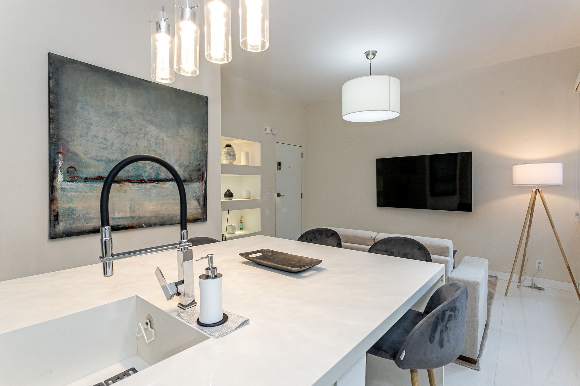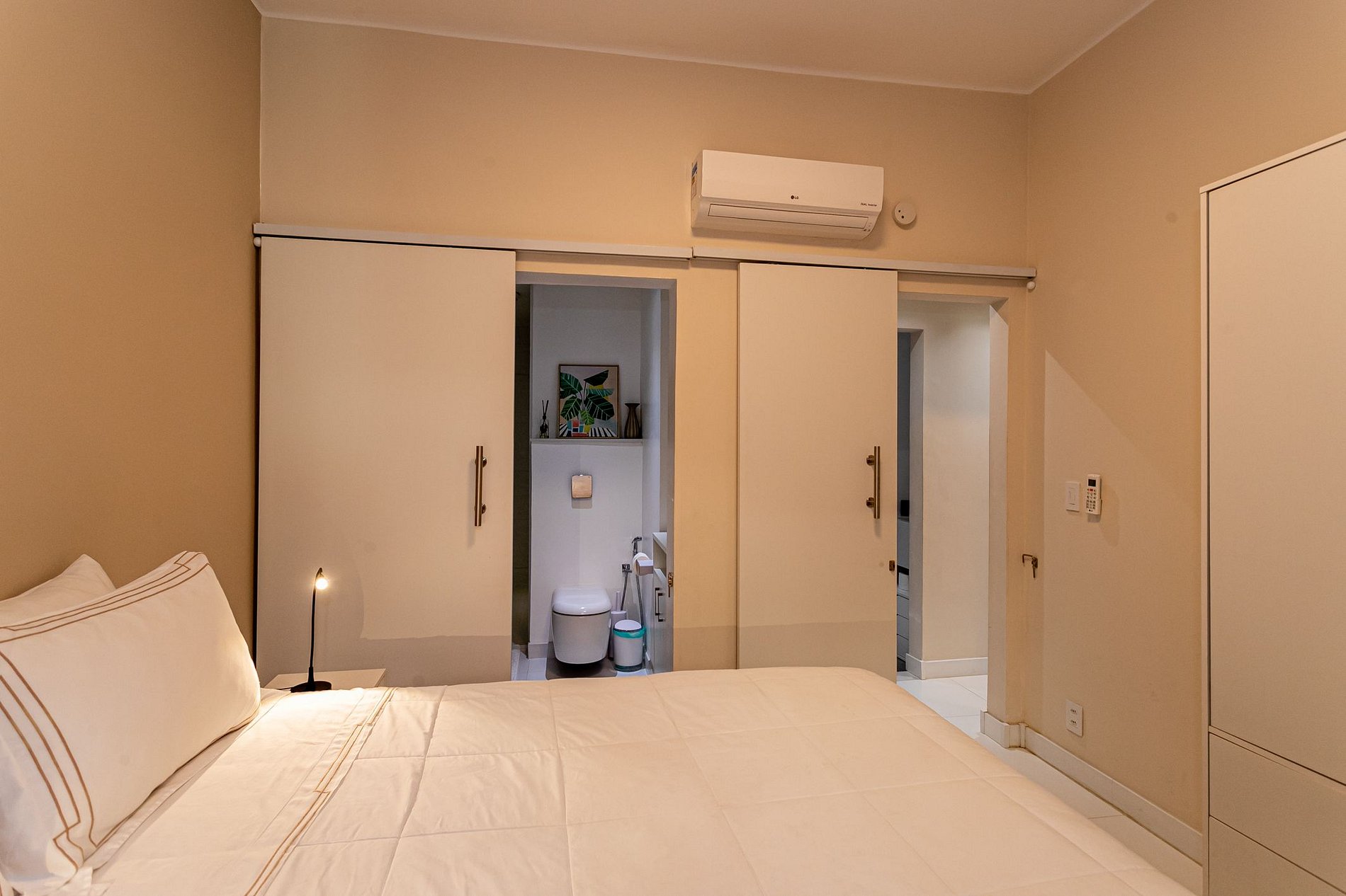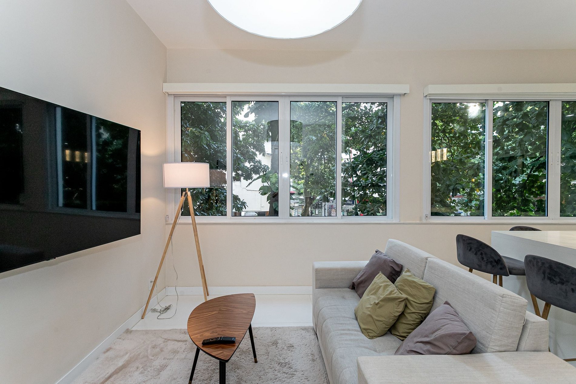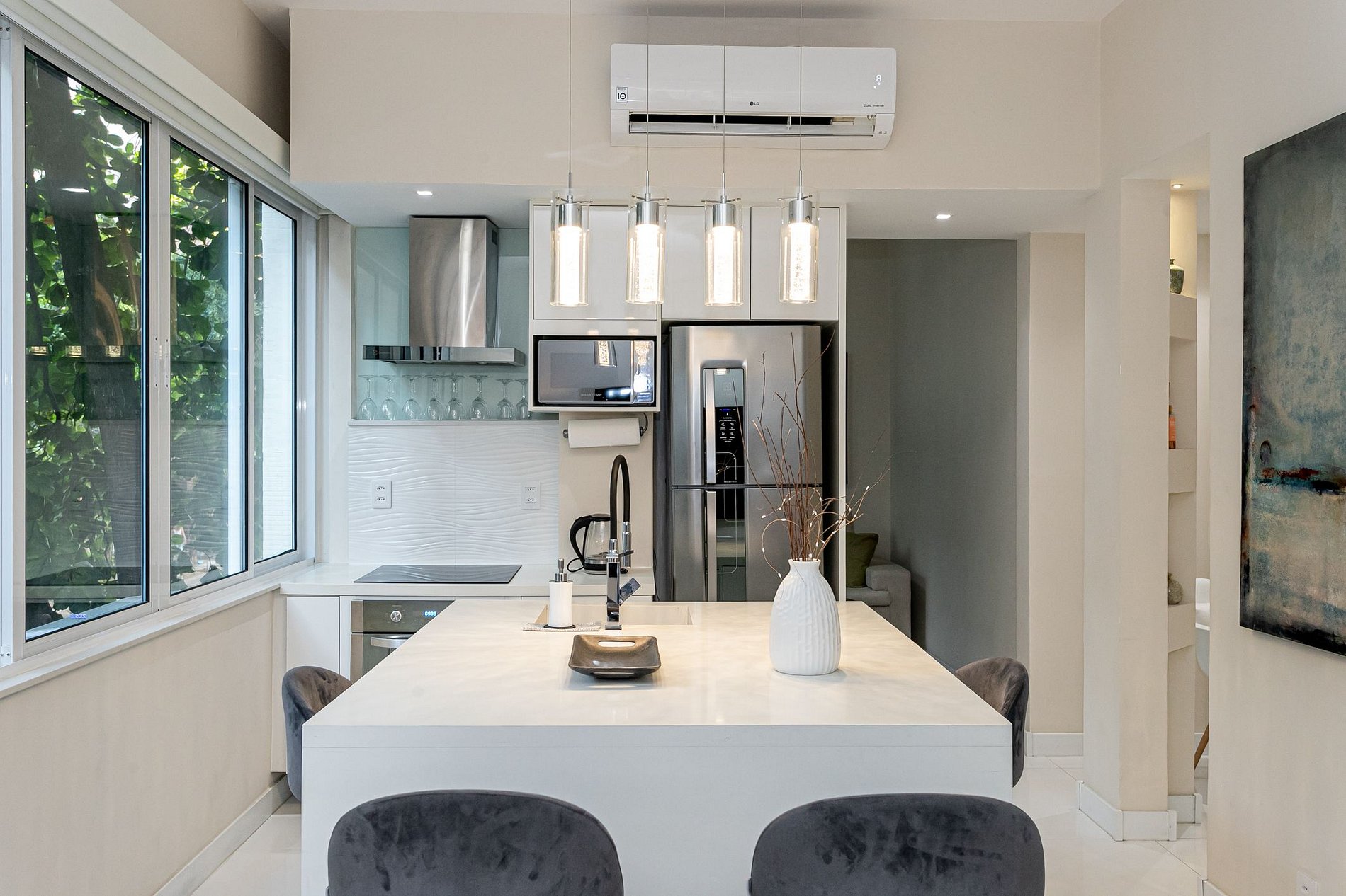 You'll enjoy all the amenities you need for a comfortable and convenient stay, including air conditioning, Wi-Fi, and a fully equipped kitchen where you can whip up your favorite Brazilian meals. Relax in the cozy living room, complete with a comfortable sofa and chairs, a flat-screen TV, and beautiful decor.